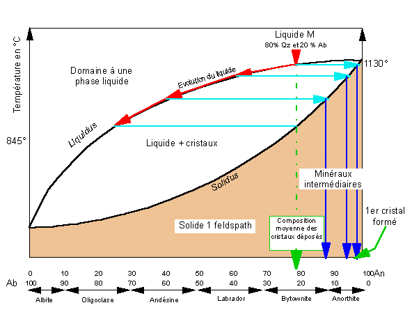 à sa température limite, lorsqu'il croise son solidus, il cristallise totalement. Le